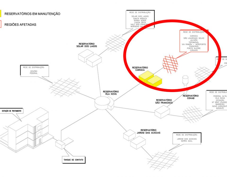 Haverá interrupção somente nos bairros abastecidos pelos reservatórios que serão limpos