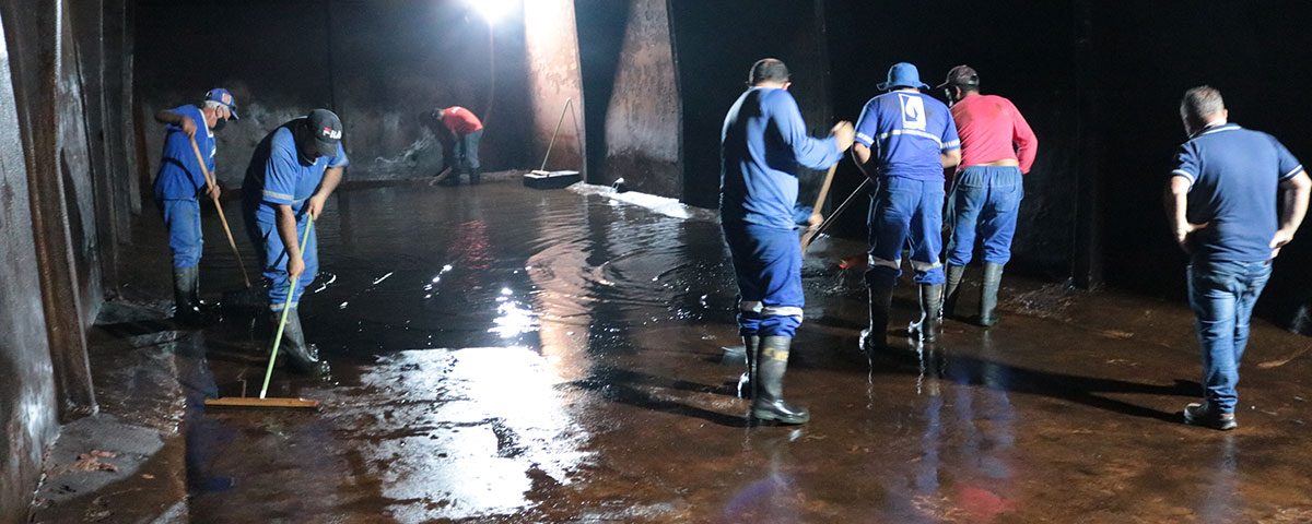 Os primeiros reservatórios a serem limpos foram o tanque de contato da Estação de Tratamento de Água (ETA) e o reservatório Vila Nova. Nesses dois reservatórios passam toda a