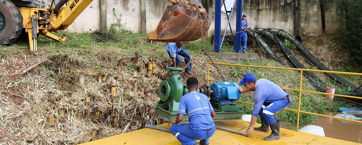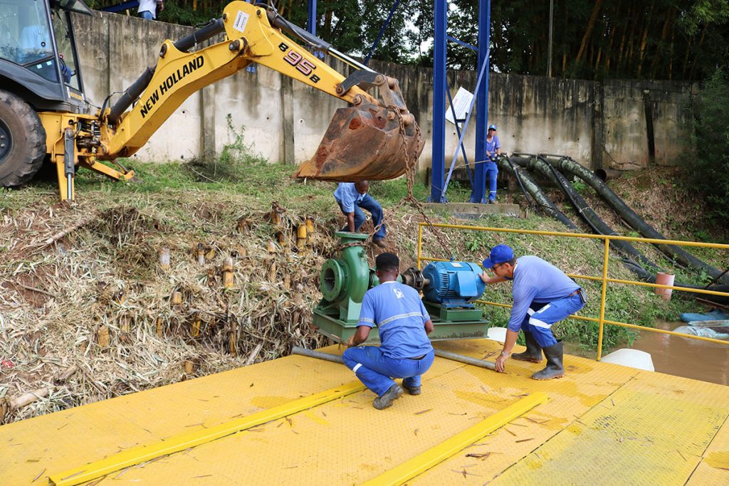 A operação desta segunda, para colocar a primeira das três motobombas contou com a ajuda de uma retroescavadeira e seis servidores operacionais da autarquia.