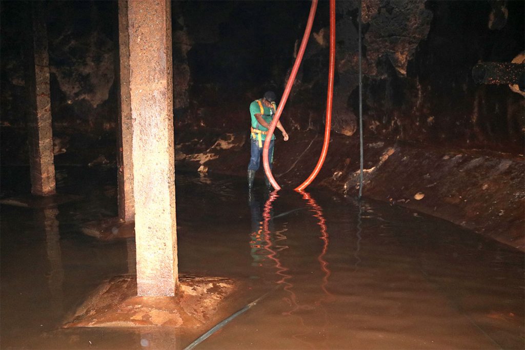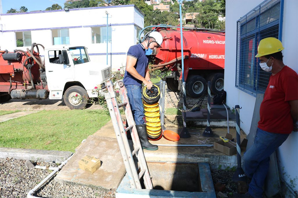 O reservatório da ETA é um tanque de contato. É a última etapa do tratamento e onde água recebe o cloro e o flúor. Já o Vila Nova é o reservatório que distribui a água para os demais. Nos dois reservatórios foi realizada a lavagem das paredes e aspiração dos resíduos sólidos.
